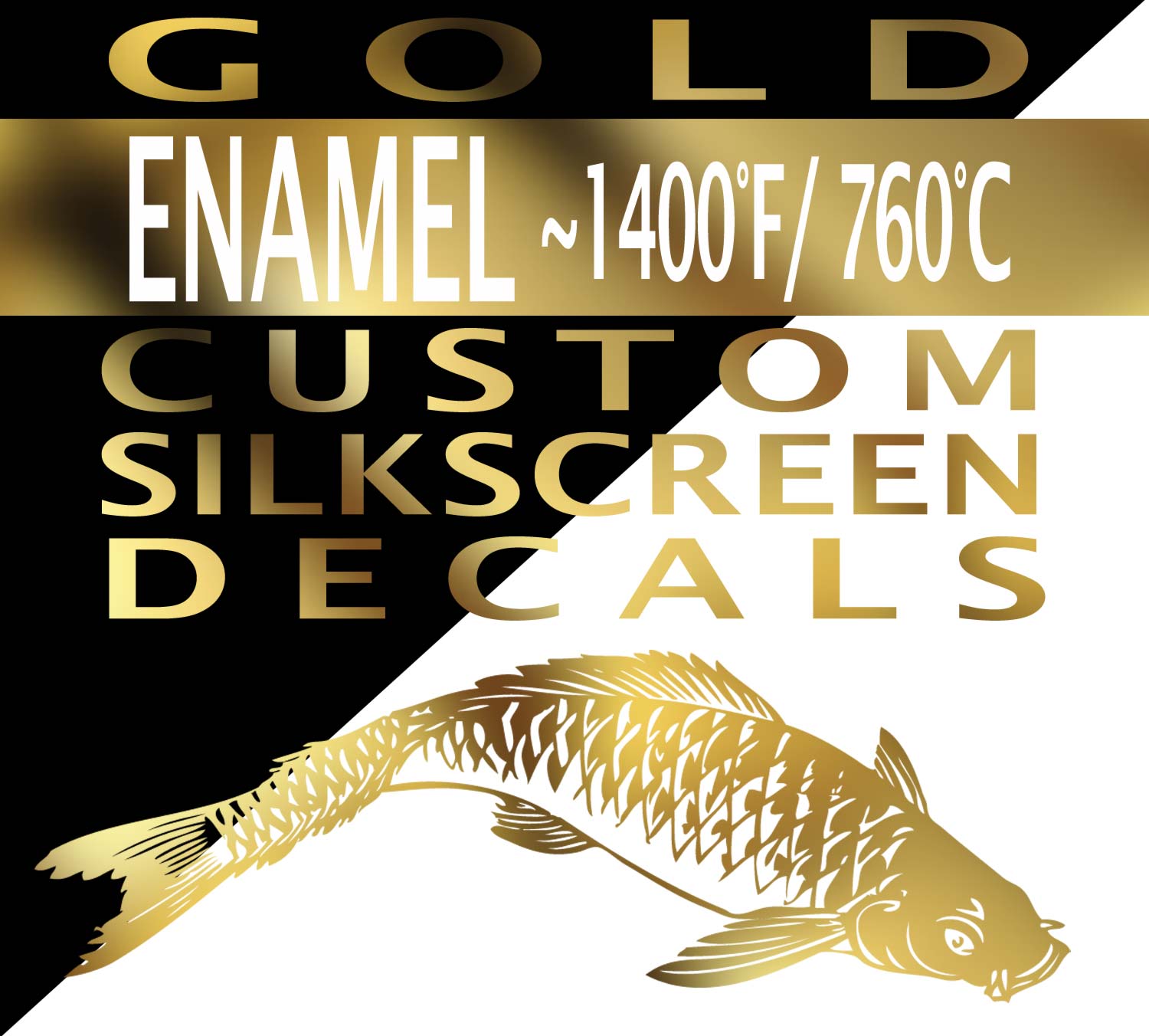 KUNDENSPEZIFISCHE Silkscreen 23K Gold-Abziehbilder für Emaille - 1150°F / 620°C bis 1200°F / 650°C
