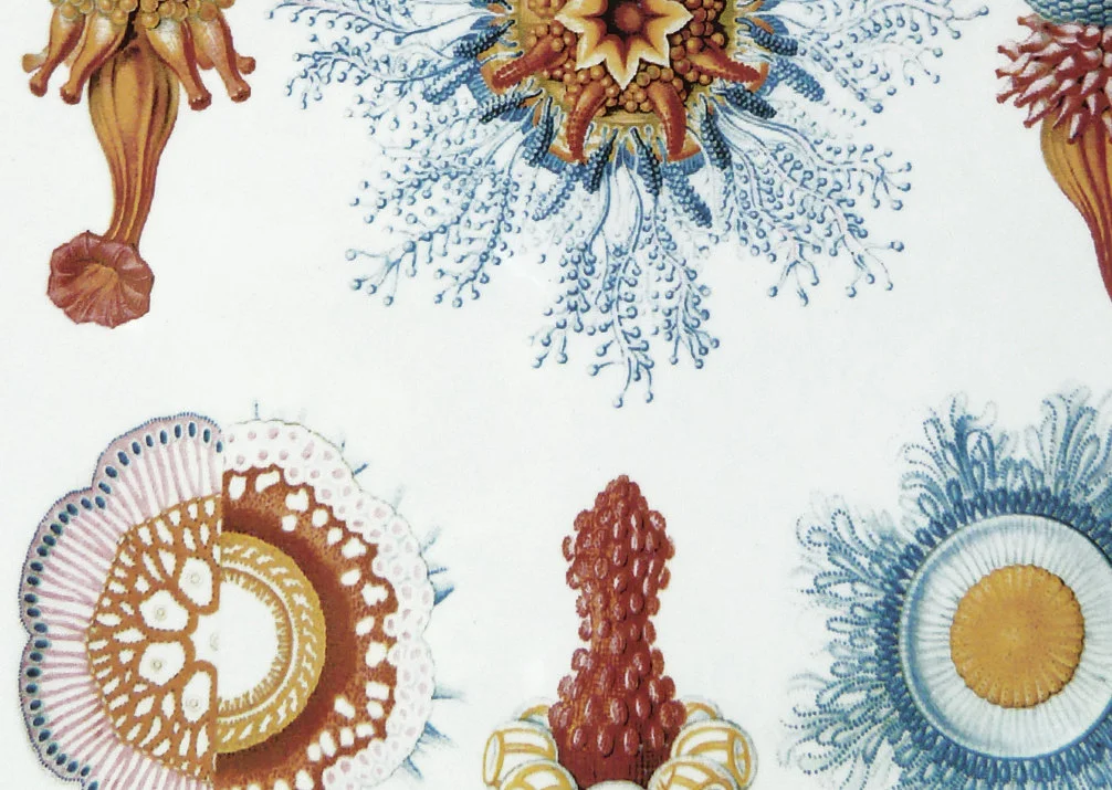 Red Blue Sea Creatures Illustrations - Not Food Safe - Glass Fusing Decal, Ceramic Decal, Enamel Decal